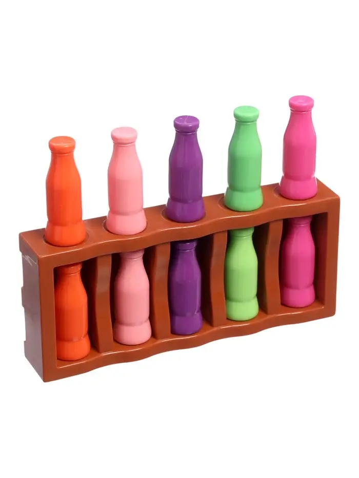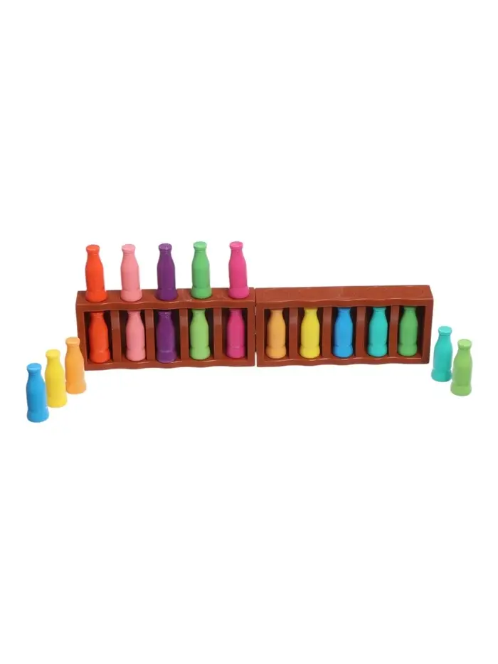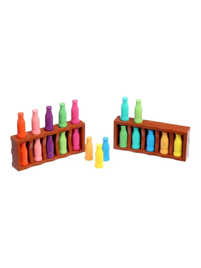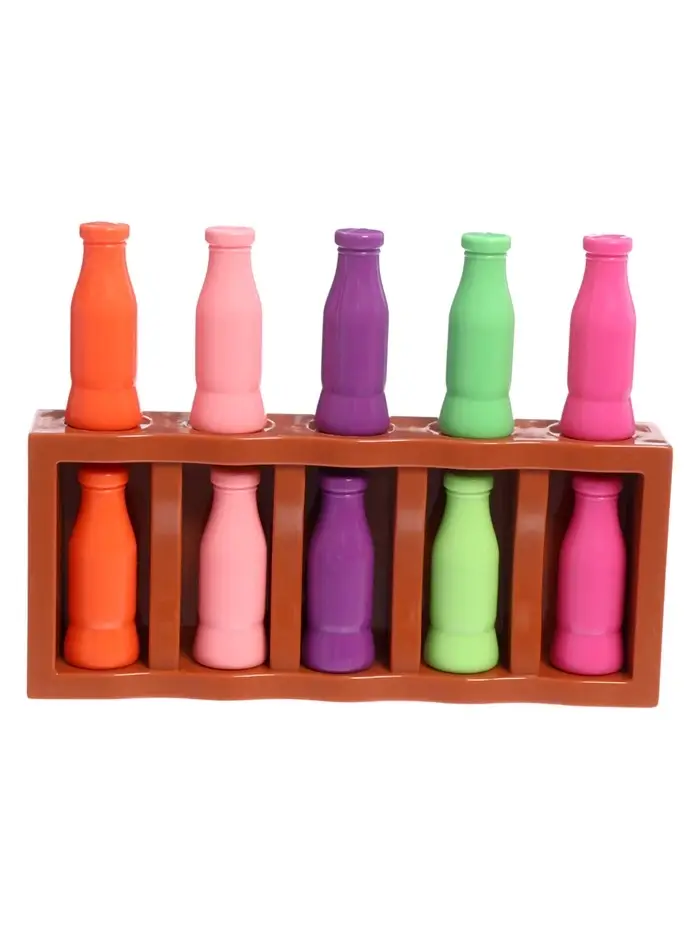 - Ведущий выставляет бутылочки в ящик в рандомном порядке и так, чтобы этого не видели игроки.