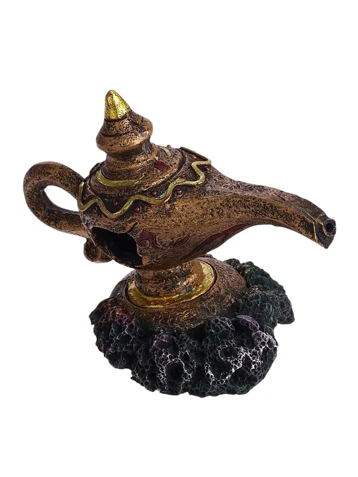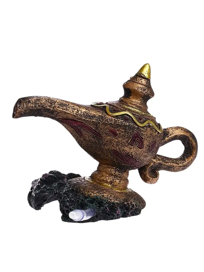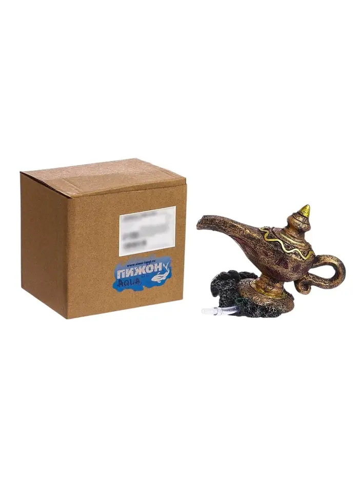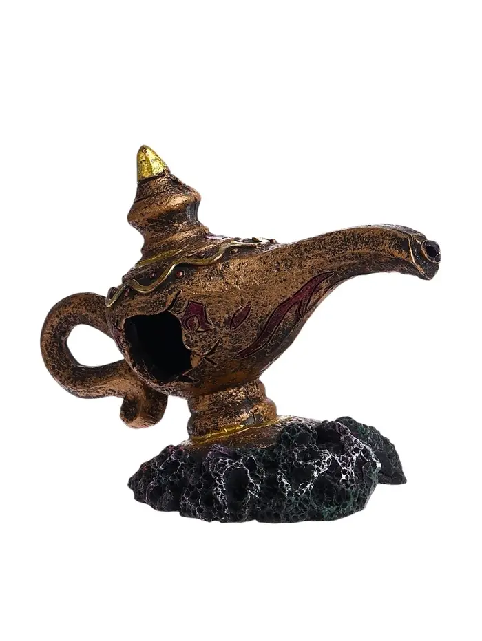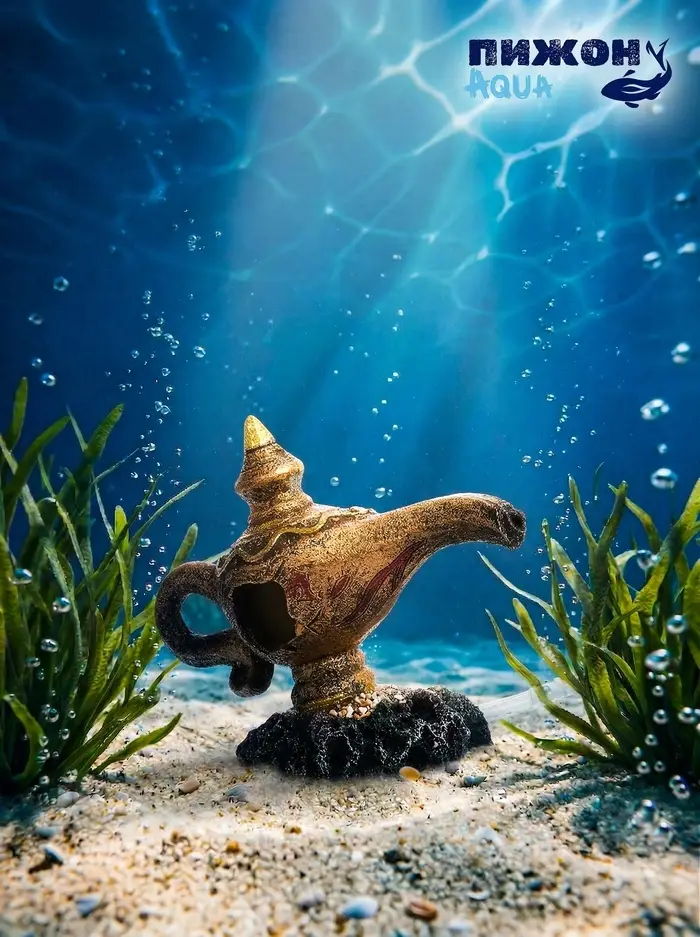 Декор «Лампа» — изысканный акцент для аквариума в стиле ретро, фэнтези или винтаж. Фигурка высотой 12 см выполнена из полистоуна — прочного, инертного материала, безопасного для воды и обитателей. Золотистое покрытие придаёт декору благородный блеск, не выцветает со временем и не влияет на химический состав среды.