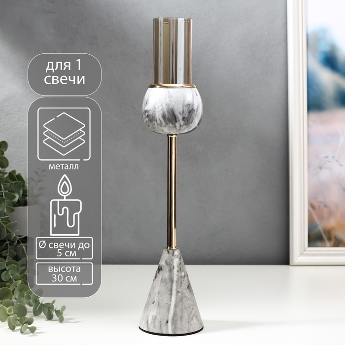 Подсвечник металл на 1 свечу "Серый мрамор" 30х8х8 см
