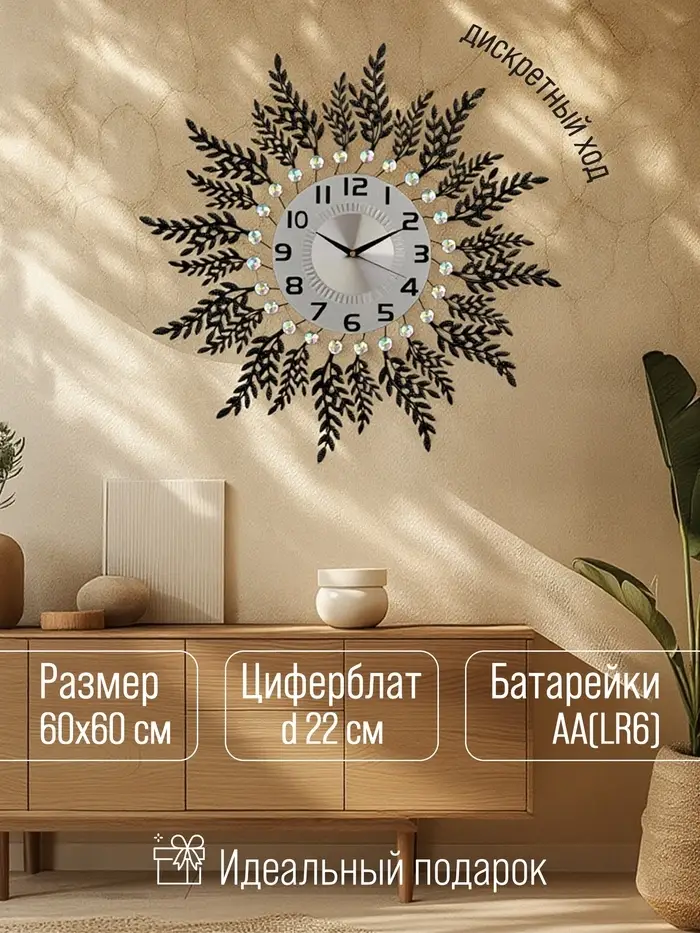 Часы настенные интерьерные «Эген», серия: Ажур, дискретный ход, d=60 см, циферблат d=22 см, от батарейки 1хАА