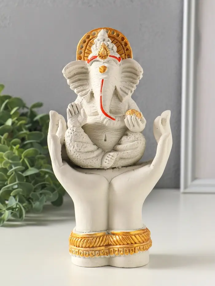 Эта белая гипсовая статуэтка с золотыми акцентами — воплощение мудрости и благополучия для вашего пространства. Универсальный образ Ганеши, почитаемого как устранителя препятствий, привносит в дом атмосферу гармонии и настраивает на удачу в начинаниях. Изящное сочетание матовой поверхности и позолоты создаёт сдержанное сияние, делая фигурку значимым акцентом в интерьере.
