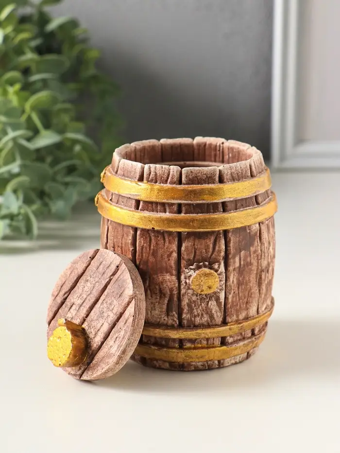Шкатулка-бочонок создаёт надёжное личное пространство для ценных мелочей, защищая их от пыли и потери. Её лаконичный дизайн легко вписывается в любой стиль, а удобная крышка обеспечивает быстрый доступ к содержимому. Это решение для тех, кто ценит порядок и эстетику в повседневной организации.
