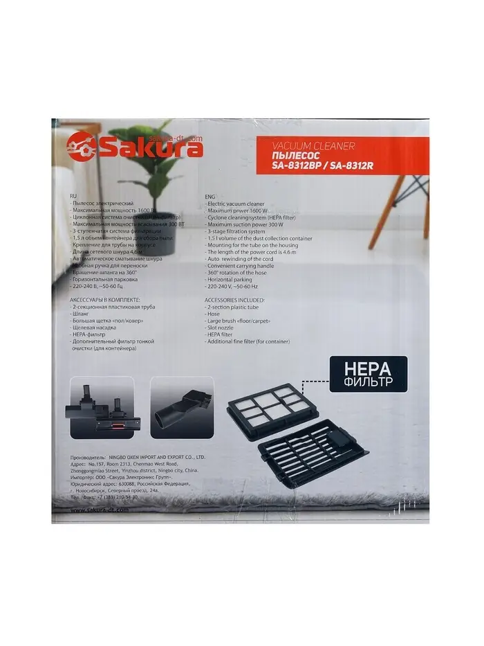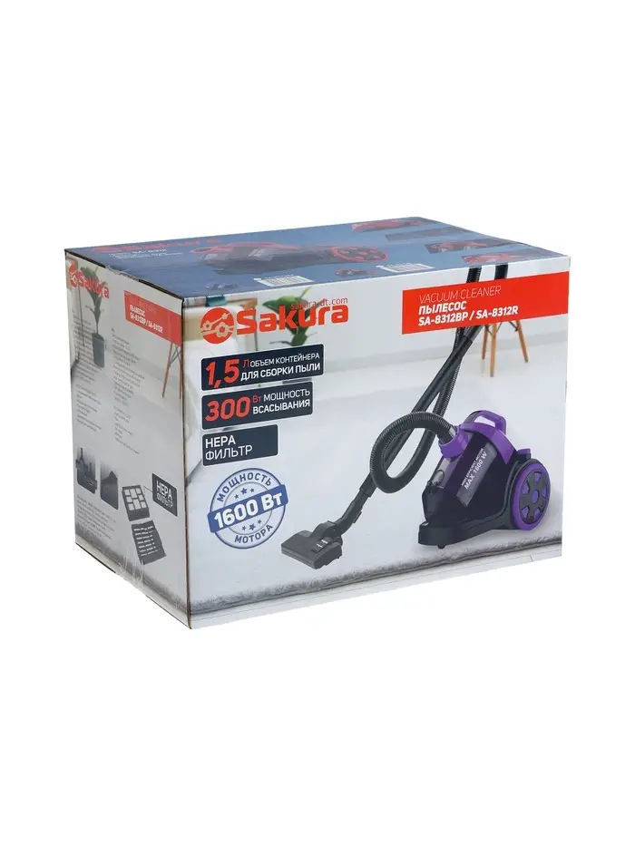 Пылесос Sakura SA-8312BP, 1600/300 Вт, 1.5 л, фиолетовый