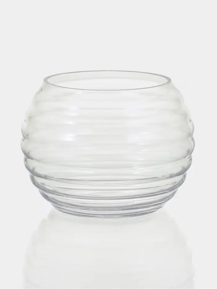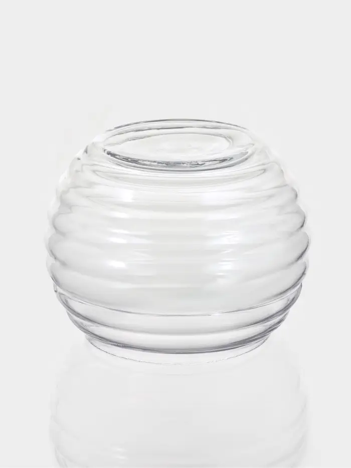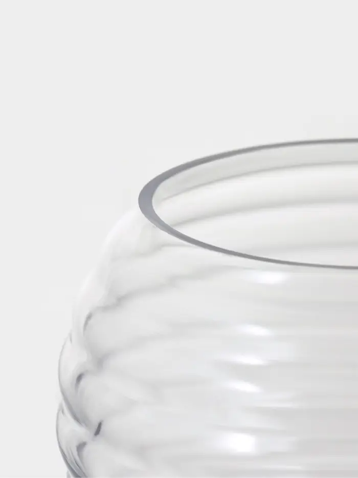 Эта стеклянная конфетница с волнообразным рельефом станет элегантным акцентом на вашем столе. Её прозрачная форма удерживает внимание, а плавные линии создают игру света, напоминая о застывших в кристалле морских волнах. Конфетница вмещает до 1.25 литра угощений, сохраняя их вид и делая сервировку изысканной.