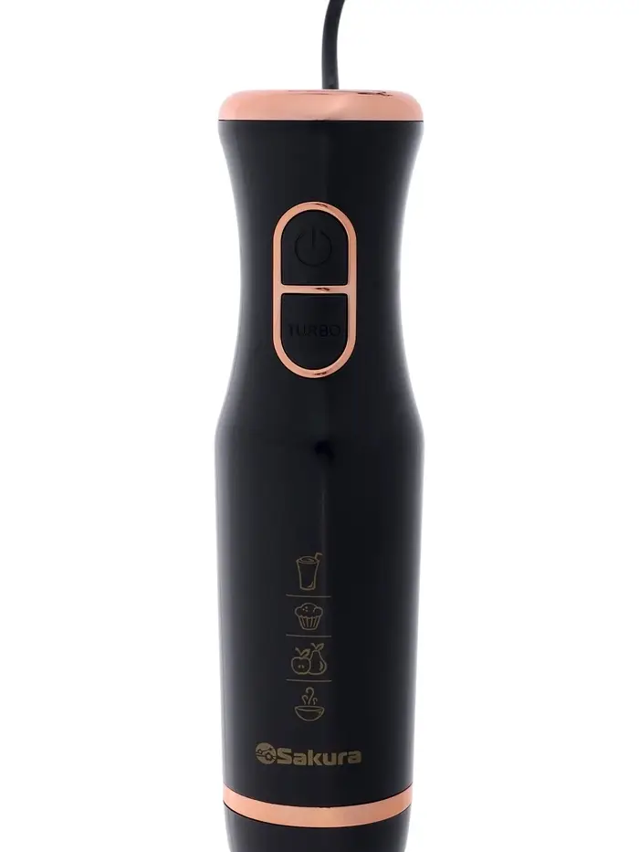 Блендер Sakura SA-6266SBK, погружной, 600 Вт, 2 скорости, стакан 0.7 л, чоппер 0.5 л, венчик