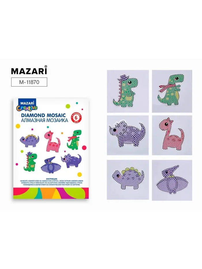 Алмазная мозаика «Динозавры» 6.5×8 см, на стикере, 6 штук в наборе