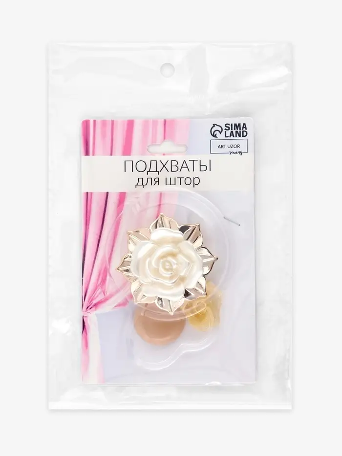 Подхват для штор, «Перламутровый цветок», d=6.5 см, молочный