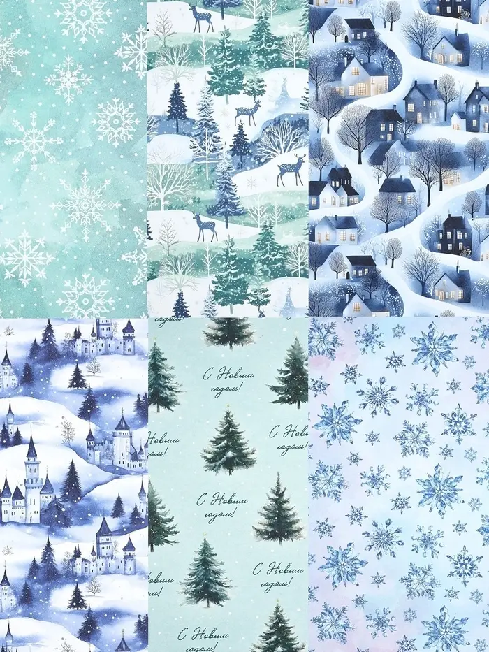 Набор упаковочной бумаги с наклейками, 6 листов, «Новый год», 70×100 см