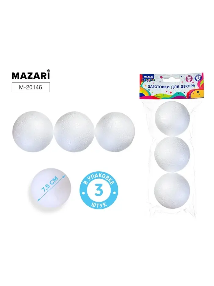 Заготовки для декорирования «Шар из пенопласта», полистирол, диаметр 7.5 см, 3 шт.