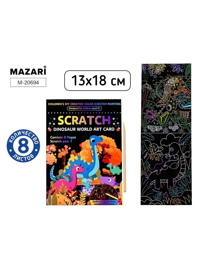 Гравюра - блокнот «Динозавры» 13×18 см, 8 л.