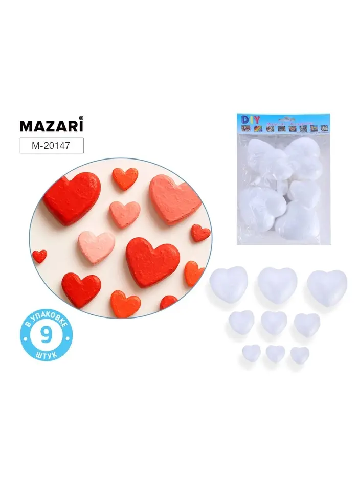 Заготовки для декорирования «Сердца из пенопласта», полистирол, 9 шт.