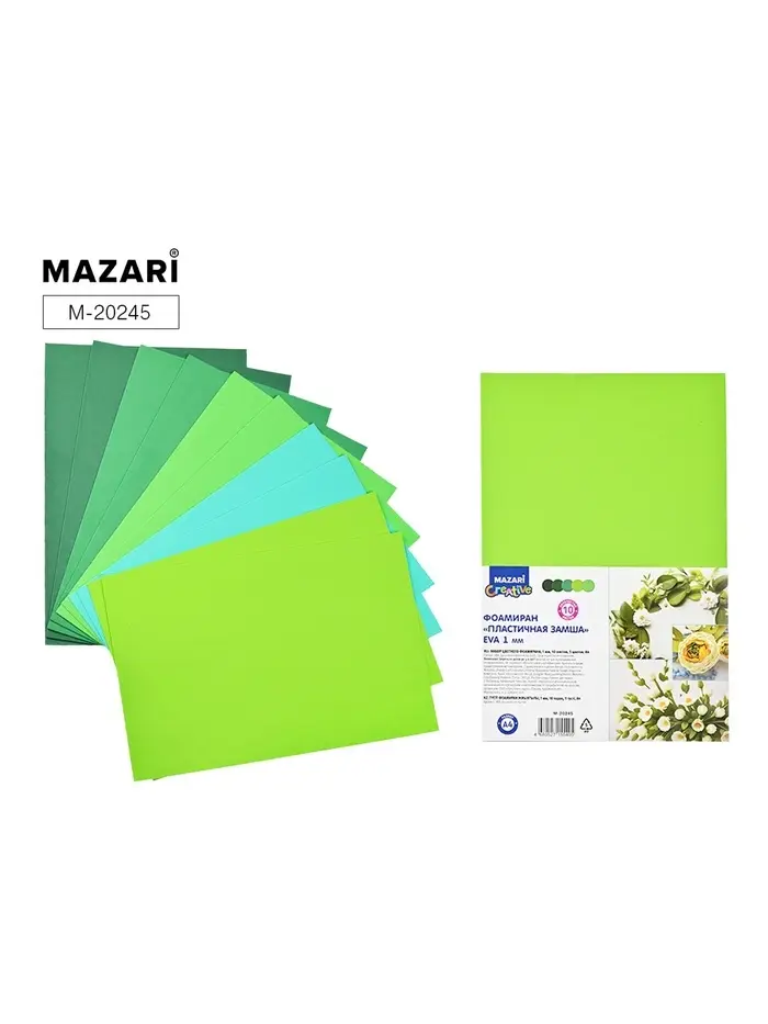 Фоамиран цветной «Зеленые оттенки», 10 листов, 5 цветов, формат А4, толщина 1 мм