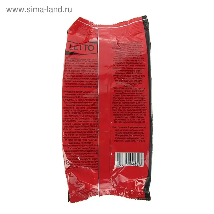 Удобрение «Летто нитроаммофоска» позволяет за один приём производить подкормку сразу тремя питательными элементами. Обеспечивает значительную прибавку урожая и предохраняет почву от внесения лишних удобрений, которые могут нарушить процесс вегетации растений.