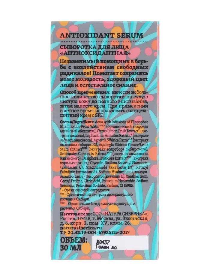 Сыворотка для лица антиоксидантная Natura Siberica Oblepikha C‑BERRICA, 30 мл