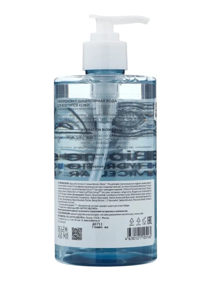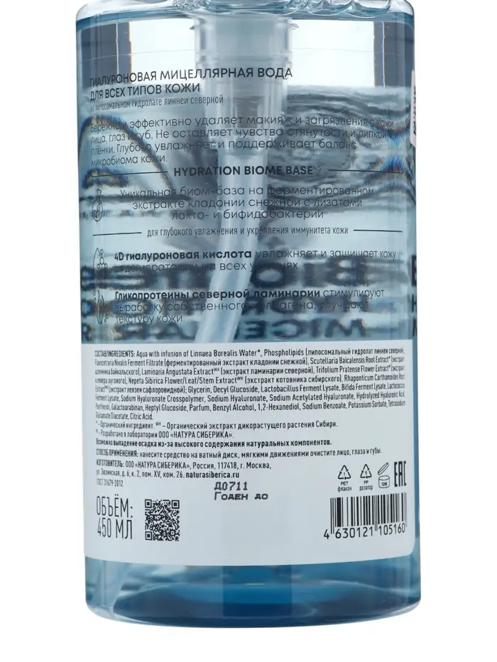 Мицеллярная вода гиалуроновая NS Lab Biome Hydration для всех типов кожи, 450 мл