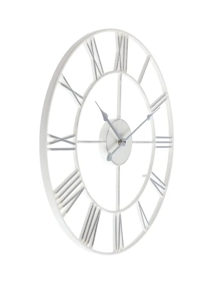 Круглые интерьерные часы с прозрачным циферблатом создают ощущение лёгкости и визуально не перегружают стену. Сочетание светлых оттенков и металлических элементов поддерживает современный стиль, а привычная форма делает восприятие времени интуитивным.