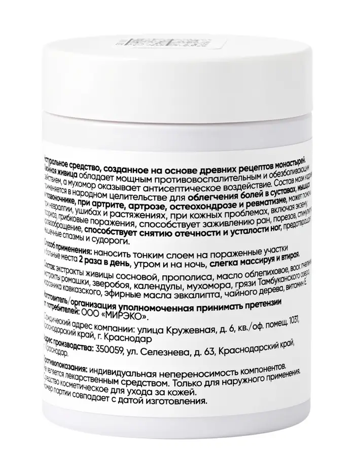 Крем-мазь живица с мухомором «Монастырская лавка» пластик, 100 мл