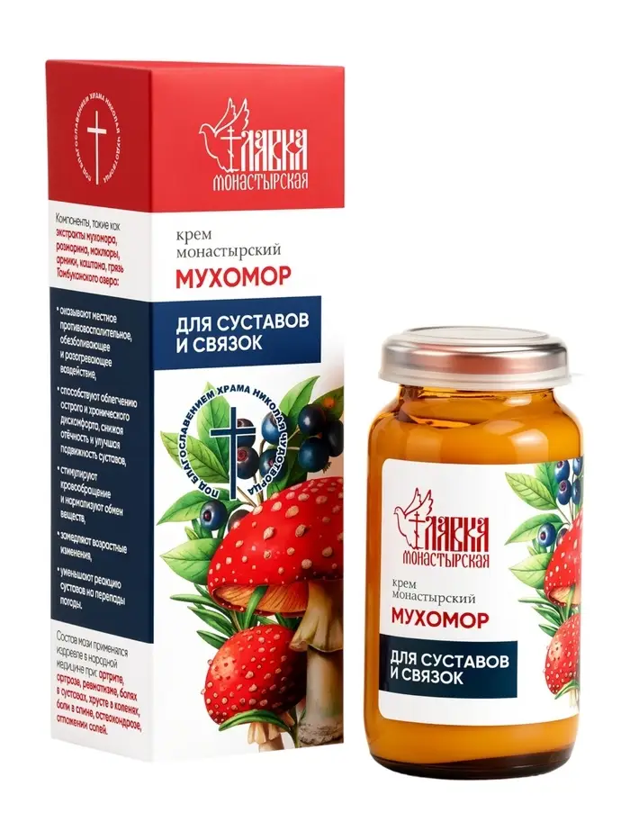 Крем-воск монастырский мухомор для суставов и связок «Монастырская лавка», стекло, 30 мл