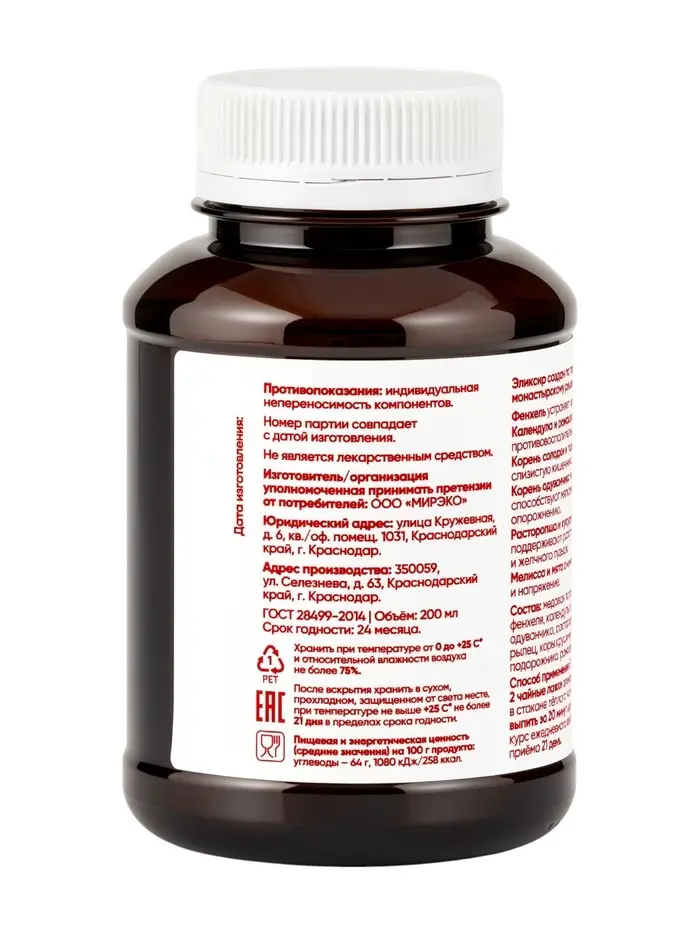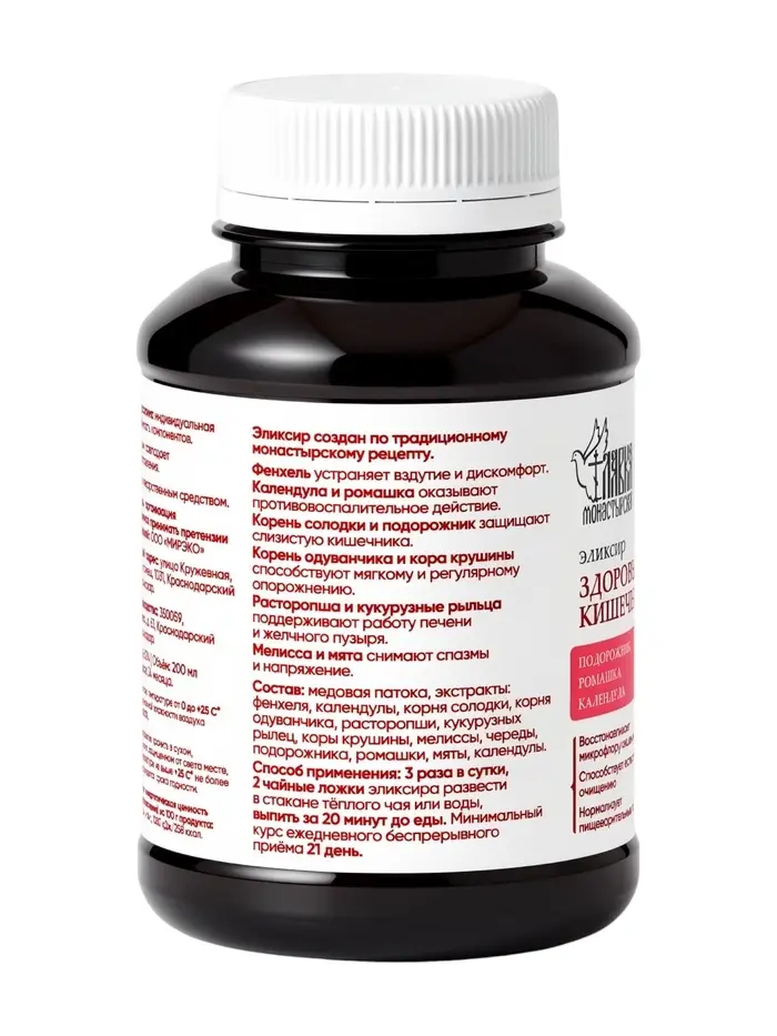 Эликсир «Монастырская лавка» Здоровый кишечник, пластик, 200 мл