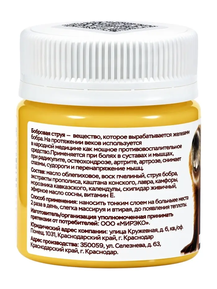 Крем-бальзам бобровый «Природа кавказского долголетия», для суставов, пластик, 40 мл