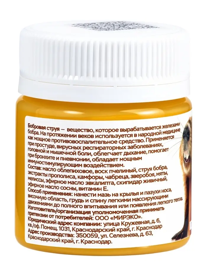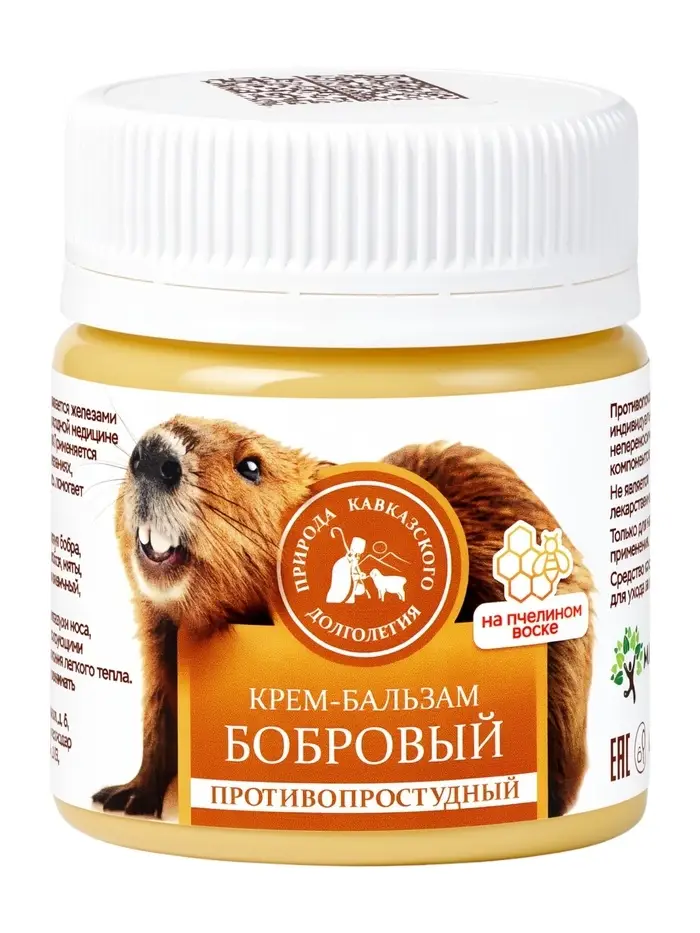 Крем-бальзам бобровый «Природа кавказского долголетия», противопростудный, пластик, 40 мл