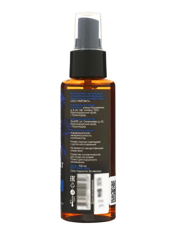 Гидролат Василек «Кавказская АптЭко», для лица и тела, пластик, 100 мл