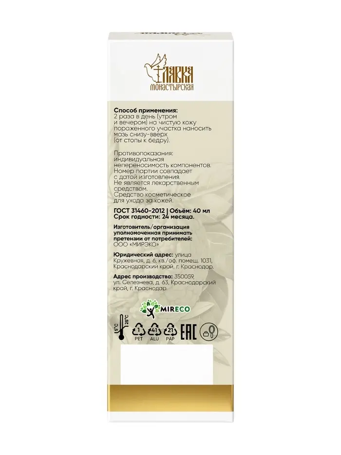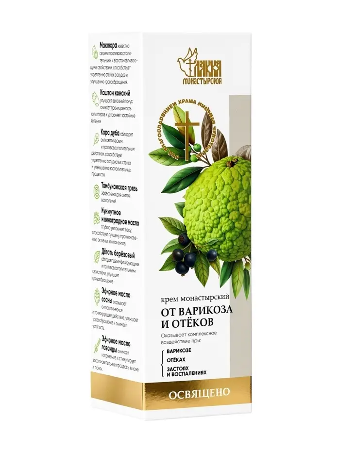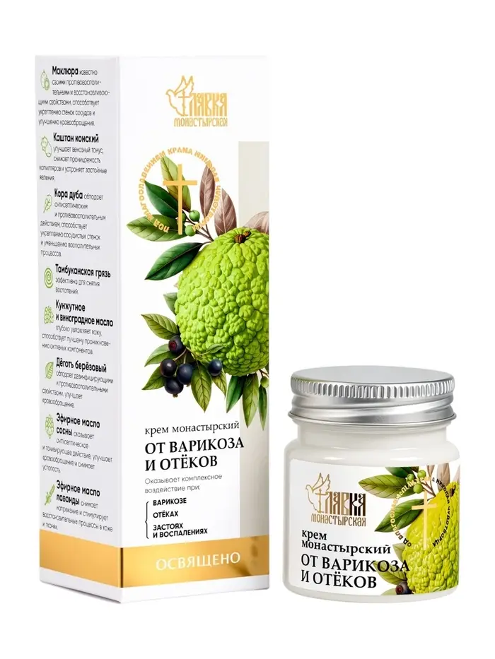 Крем-мазь на маклюре от варикоза и отёков «Монастырская лавка», пластик, 40 мл