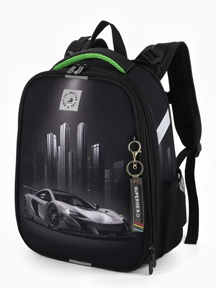 Школьный рюкзак с машиной — удобный выбор для мальчика, который ценит динамику и любит технику. Сдержанный чёрный цвет выглядит аккуратно и универсально, а рисунок с автомобилем добавляет энергии и делает рюкзак ближе ребёнку. Такой аксессуар легко становится частью школьной рутины и поддерживает уверенность в течение дня.