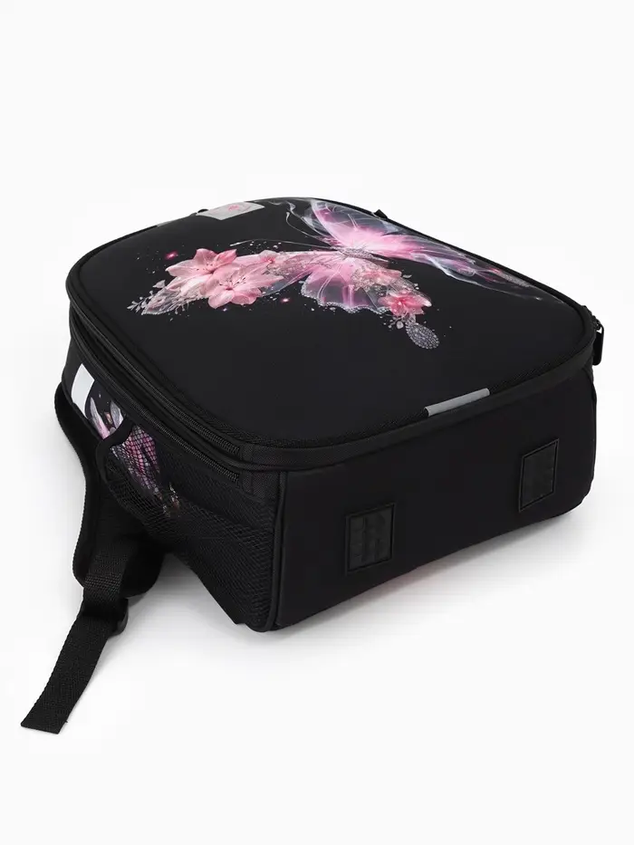 Школьный рюкзак с бабочкой — аккуратный и удобный вариант для девочки, где практичность сочетается с лёгким декоративным акцентом. Чёрный цвет смотрится сдержанно и подходит под разную школьную форму, а изображение бабочки добавляет ощущение лёгкости и индивидуальности. Такой рюкзак становится частью повседневных сборов и помогает ребёнку чувствовать себя спокойно и уверенно.