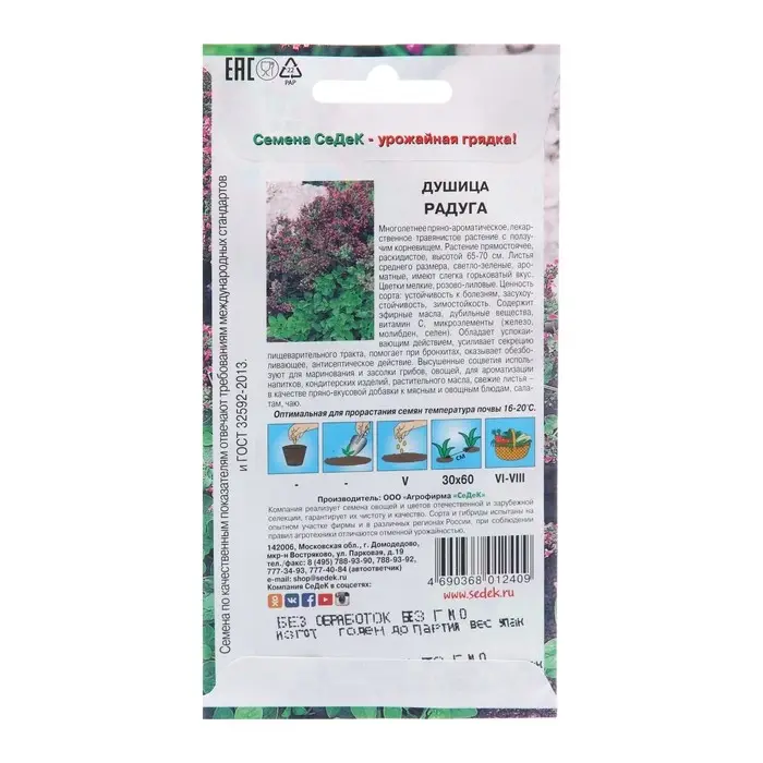 Семена Душица «Радуга», 0.05 г, «СеДеК»