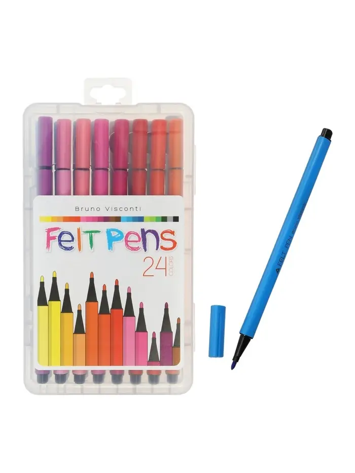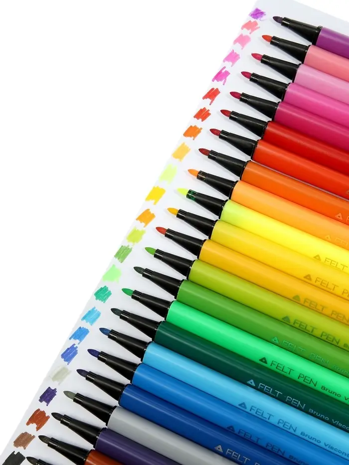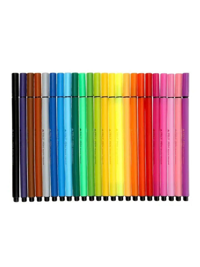 Фломастеры — яркий и удобный инструмент для рисования, творчества и учёбы. В наборе 24 насыщенных цвета, что позволяет создавать красочные рисунки, раскрашивать и оформлять записи. Оптимальное количество оттенков делает набор универсальным как для начинающих, так и для более опытных пользователей.