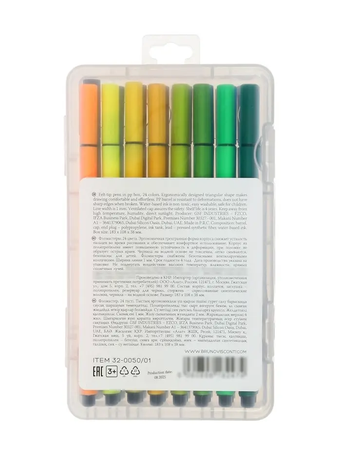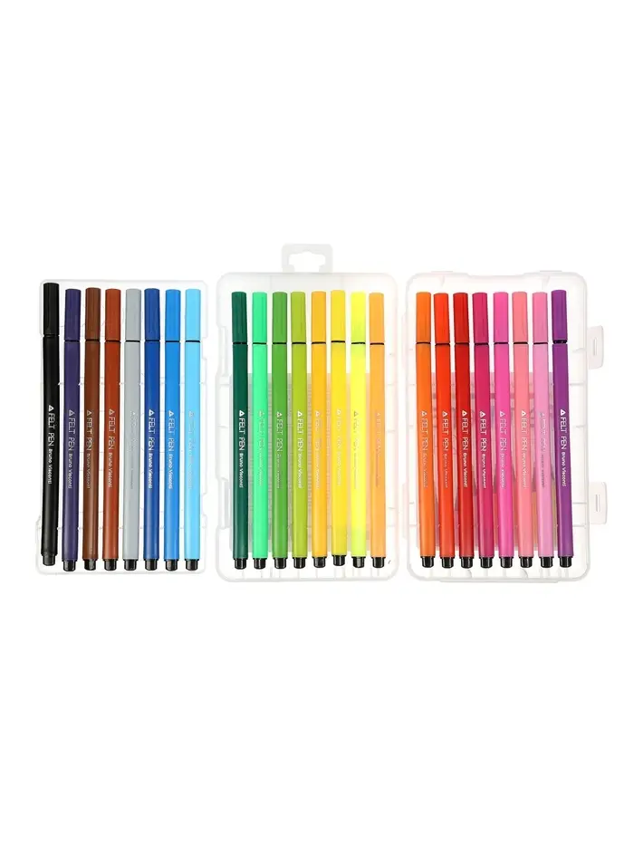Фломастеры упакованы в прочный пластиковый пенал, который обеспечивает удобное хранение и защиту от повреждений. Насыщенные чернила дают ровное и яркое покрытие, а колпачки помогают сохранять свойства фломастеров при длительном использовании. Компактный формат делает набор удобным для школы, дома и поездок.