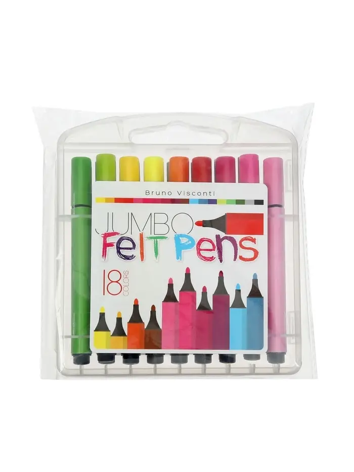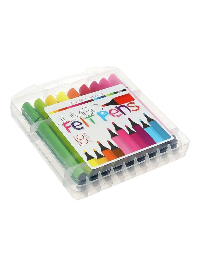 Фломастеры 18 цветов BRIGHT COLORS JUMBO, утолщенные, в пластиковом пенале
