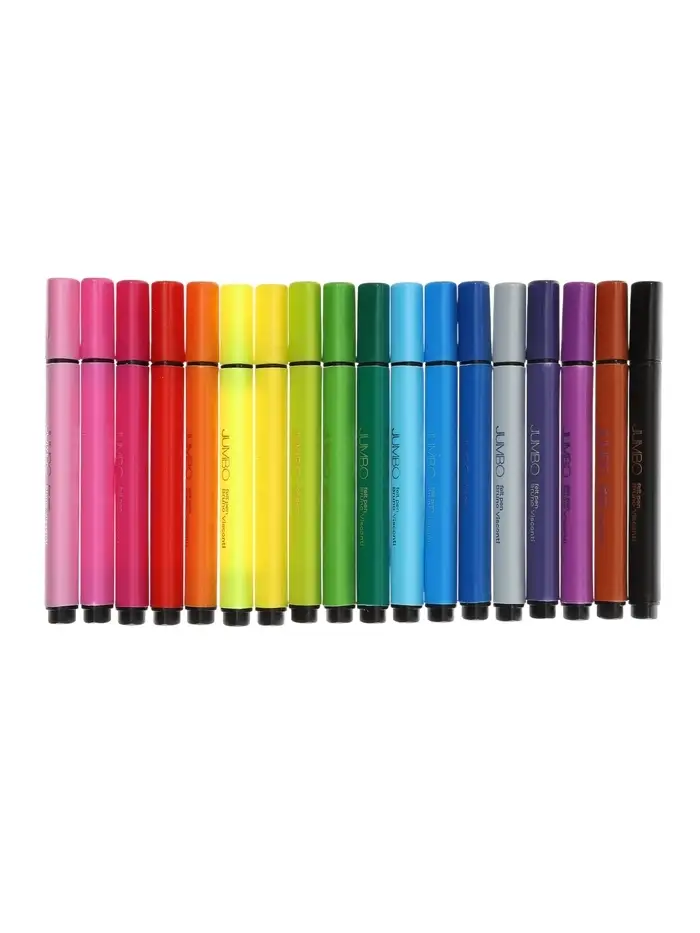 Фломастеры Bright Colors Jumbo — удобный и яркий набор для рисования, творчества и учёбы. В комплект входит 18 насыщенных цветов, что позволяет создавать красочные рисунки, раскрашивать и оформлять записи. Утолщённый корпус делает фломастеры особенно удобными для детей и обеспечивает комфортный захват.