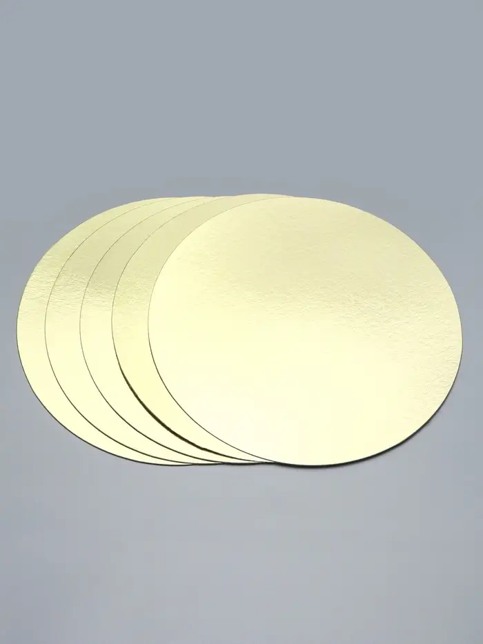 Крупный десерт требует достойной рамки. Золотые кондитерские подложки для торта, 26 см, набор 5 штук – профессиональная основа для эффектной подачи. Одностороннее покрытие дарит торжественный блеск, не отвлекая от вкуса и декора.