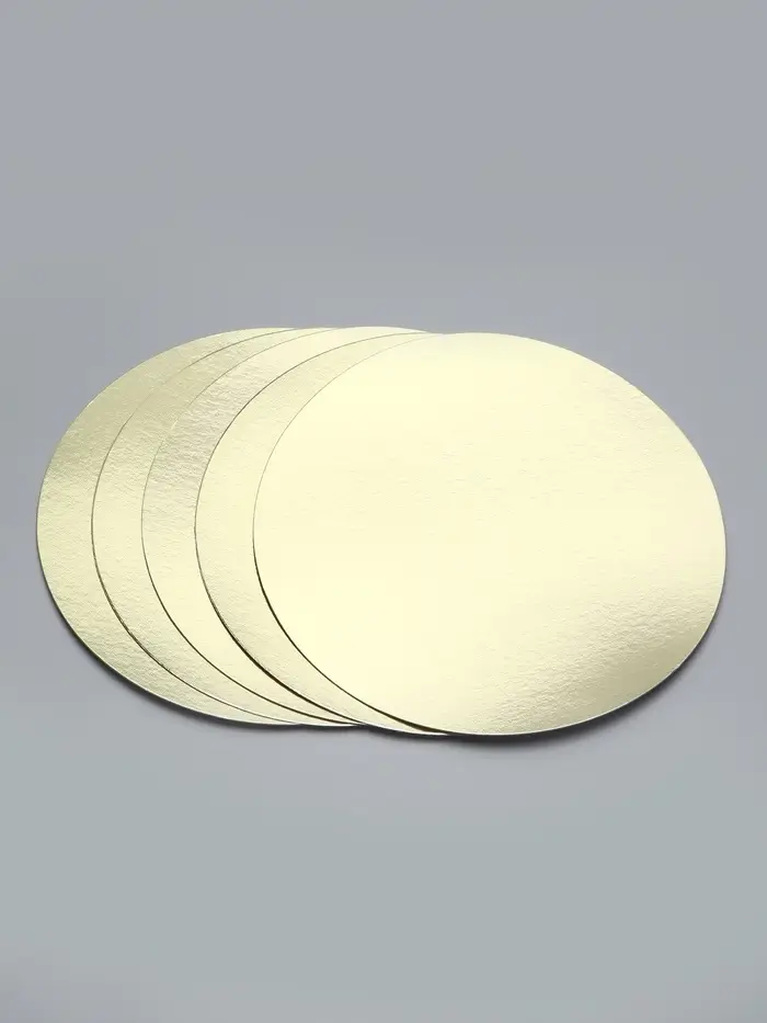 Для тортов, которые привыкли быть в центре внимания. Круглые золотые подложки для торта, 28 см, набор 5 штук – профессиональная основа для подачи крупных и многоярусных десертов. Одностороннее покрытие дарит мягкий блеск, не соперничая с украшениями.