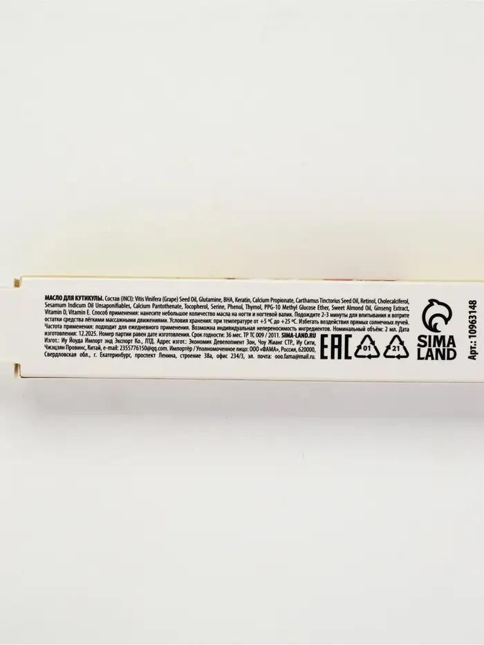 Масло для кутикулы в карандаше с миндальным маслом и экстрактом женьшеня, URAL LAB