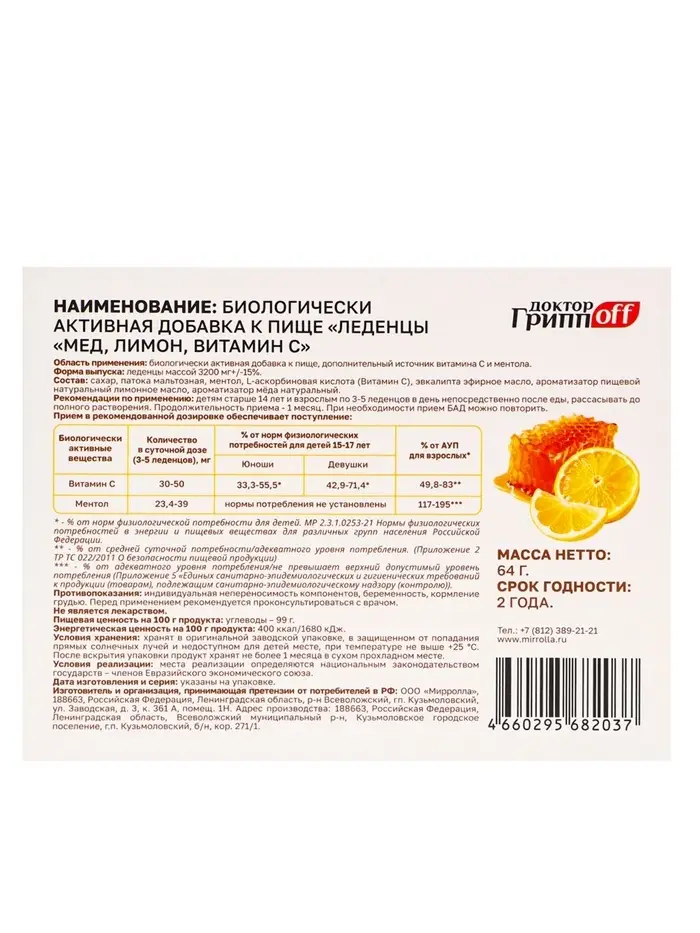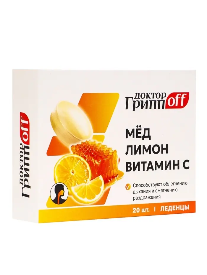 Леденцы Мёд, Лимон, Витамин С «Доктор ГриппOFF», 20 штук