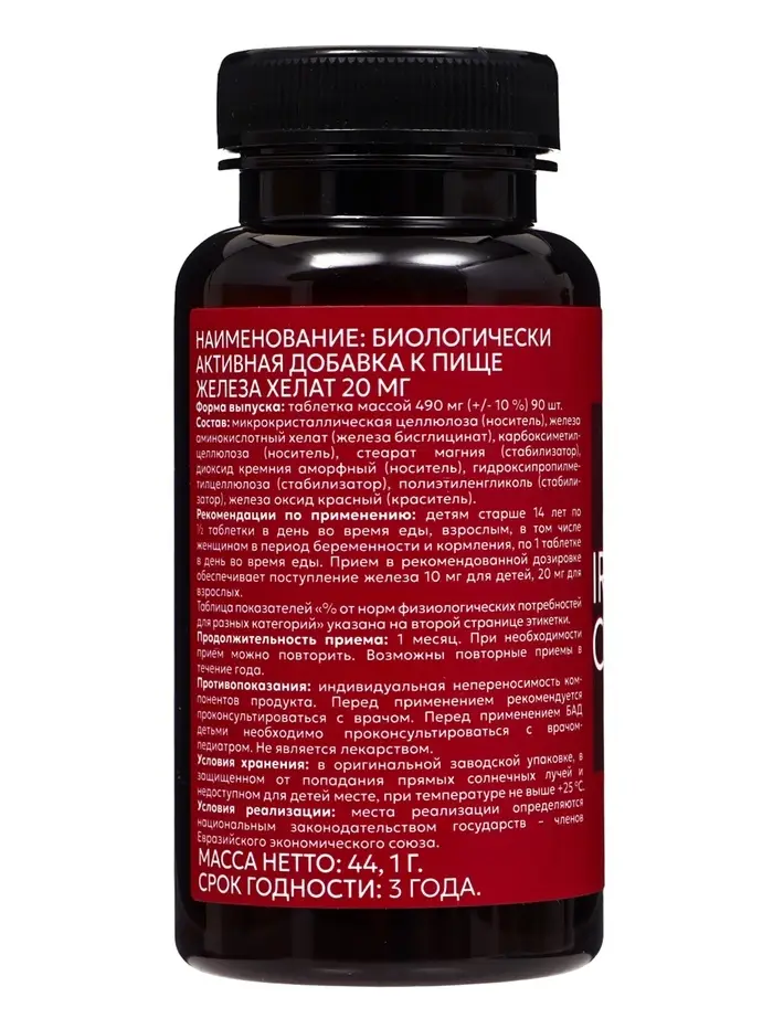Железа хелат YOUVIT, 90 таблеток по 20 мг