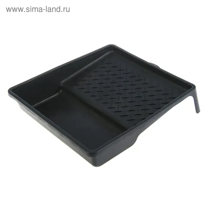Прямоугольная малярная ванночка, чёрная, 330×350 мм, пластик — ёмкость для краски с ребристой поверхностью для отжима валика. Размер 330×350 мм подходит для валиков шириной до 250 мм. Изготовлена из пластика — легко моется, не ржавеет. Ребристая зона равномерно распределяет краску по шубе валика. Используется для водоэмульсионных, акриловых, масляных красок и лаков.