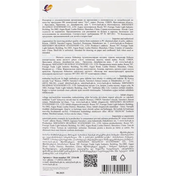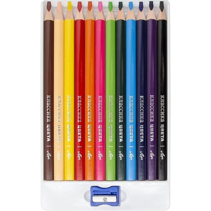 Карандаши 12цв, Луч, дерево, заточ, трехгр, толстые, с точилкой, коробка, европодвес