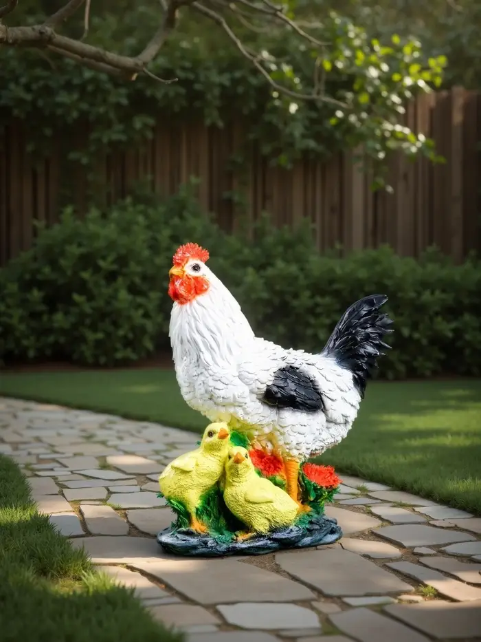 Садовая фигура из полистоуна «Курица с цыплятами», 33×17×25 см