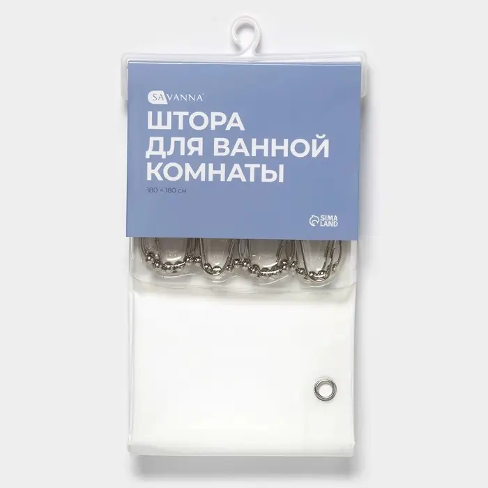 Штора для ванной комнаты SAVANNA «Элегант», с люверсами и металлическими кольцами, 180×180 см, PEVA