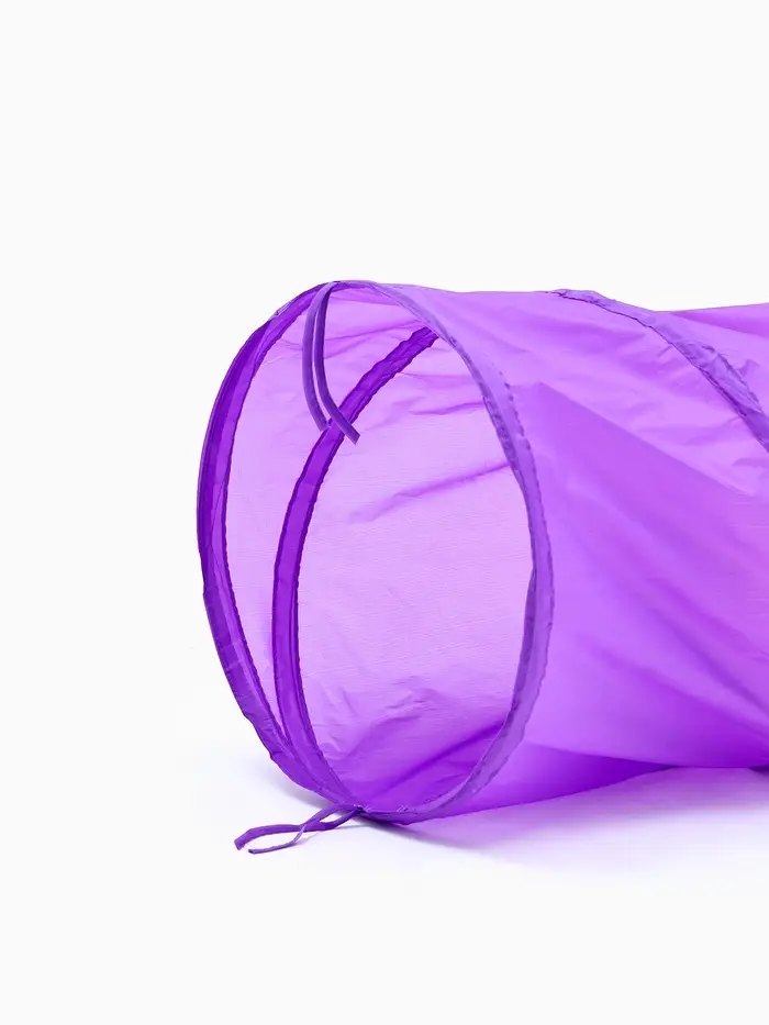 Туннель можно установить как в небольшой комнате, так и на свежем воздухе. Его легко передвигать по помещению (справится даже кроха) и удобно брать с собой — конструкция компактно складывается.