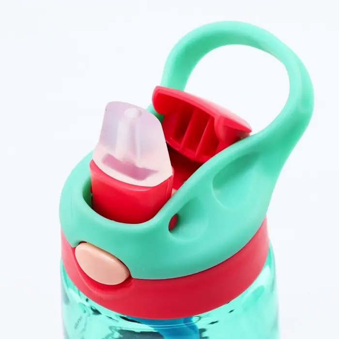 Особенностью этой бутылки является наличие петли на крышке. Это делает её удобной для переноски. А внутри бутылки есть трубочка, благодаря которой удобно пить воду даже на ходу.