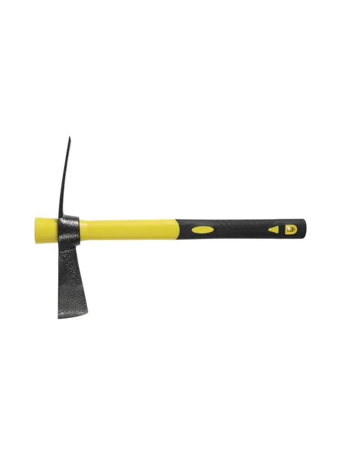 - Двухплоскостная форма головки: Острый клюв предназначен для точечного разрушения материала, а плоский обух можно использовать как молоток. Такая конструкция заменяет два инструмента.