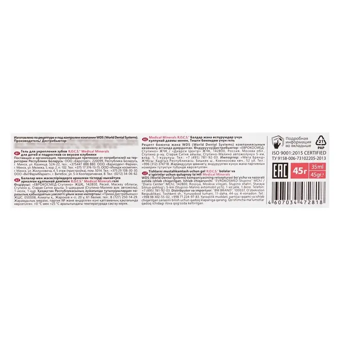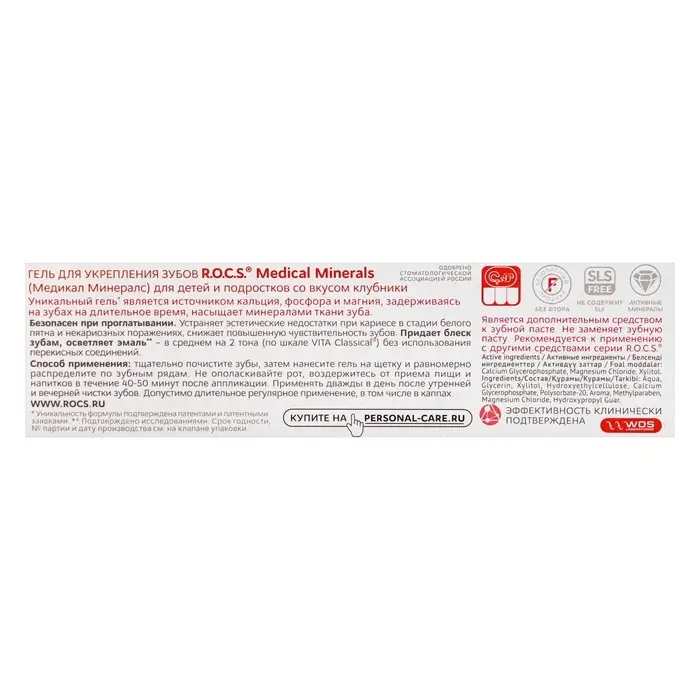 Гель для укрепления зубов R.O.C.S. Medical Minerals, для детей и подростков, со вкусом клубники, 45 г