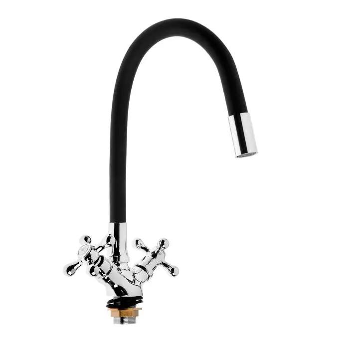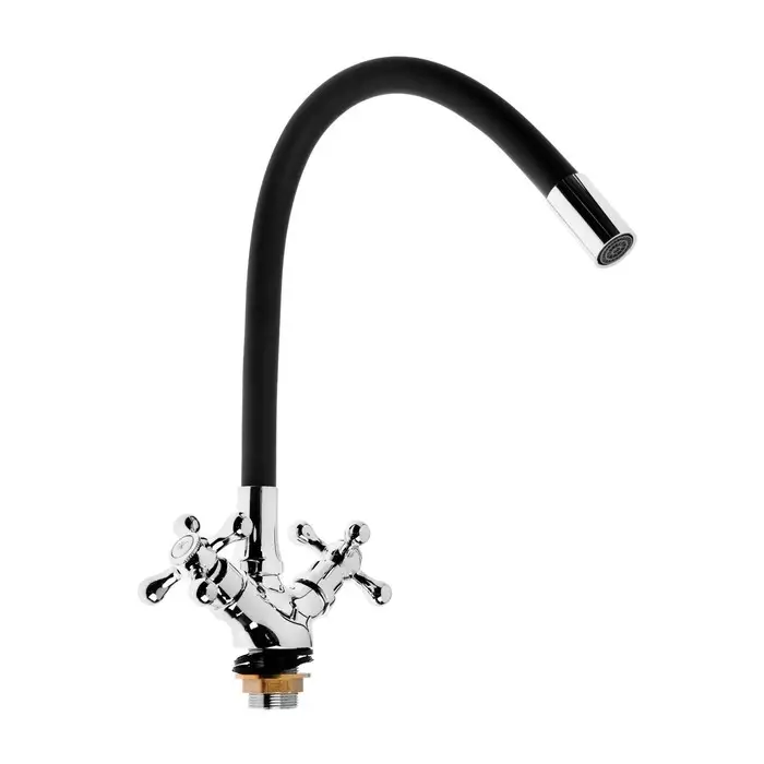 ZEIN Z2104 — это идеальное решение для любителей классического стиля. Гибкий излив упрощает мытьё посуды и уход за раковиной, а двухвентильная система управления обеспечивает точную настройку воды. Сочетание чёрного и хромированного цветов добавляет смесителю современный вид, который легко впишется в любой интерьер.