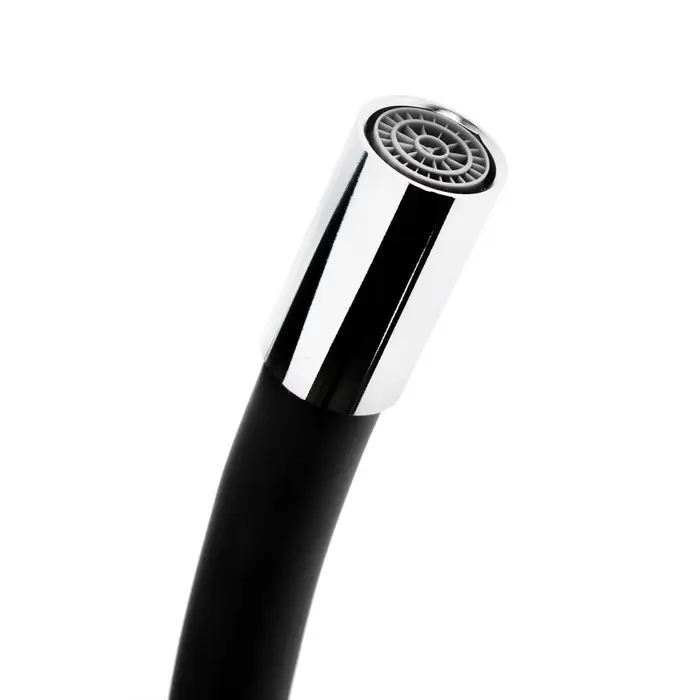 - Гибкий силиконовый излив длиной 90 мм обеспечивает удобство при использовании и уходе за раковиной.