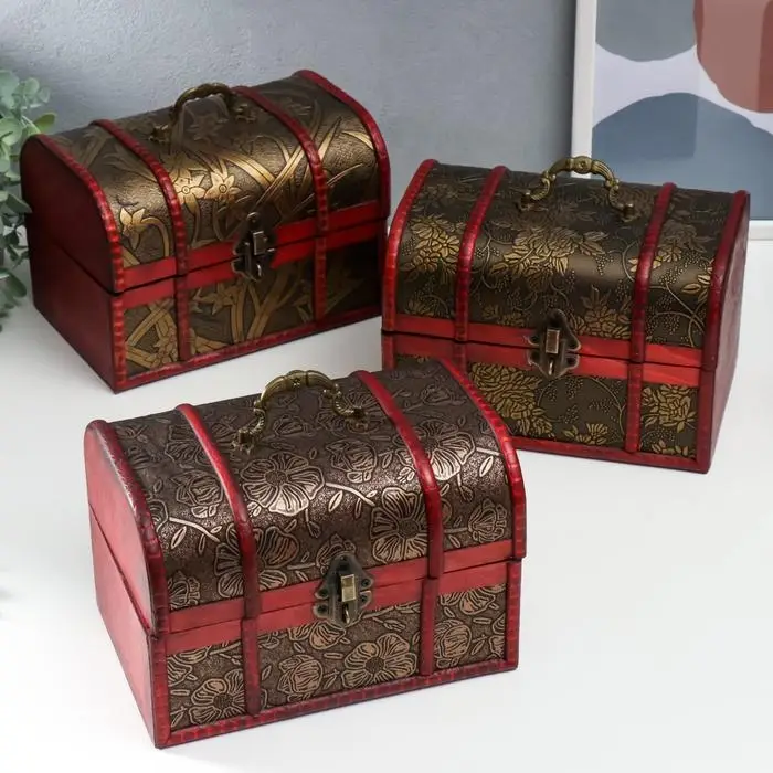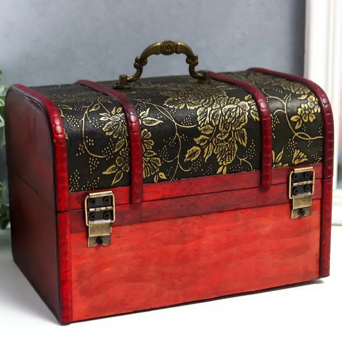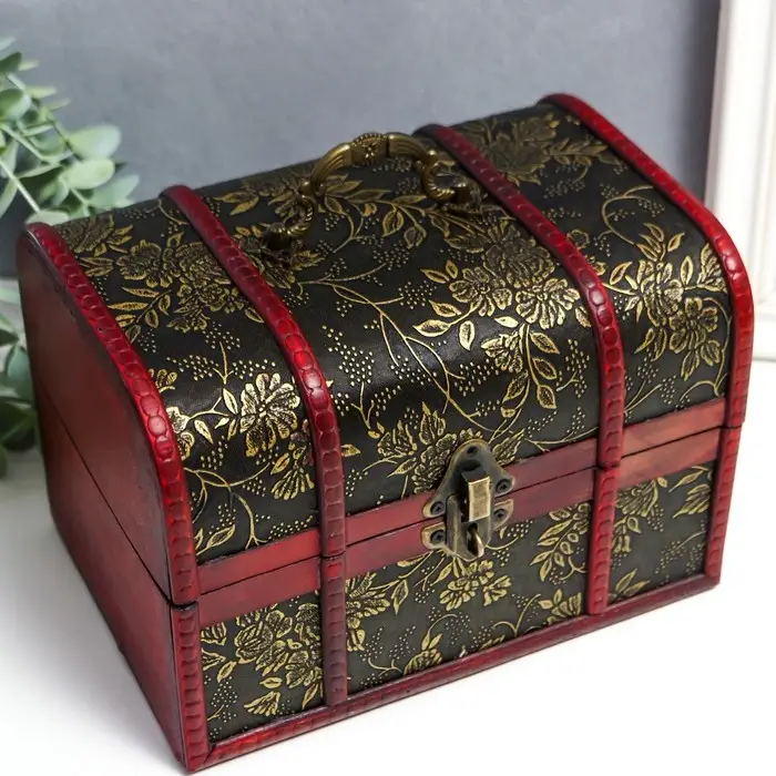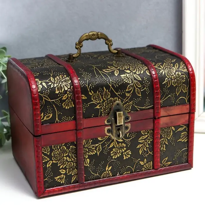 Шкатулка для украшений «Сундучок. Цветы и бамбук», дерево, состаренная, 15×22×15.5 см, МИКС